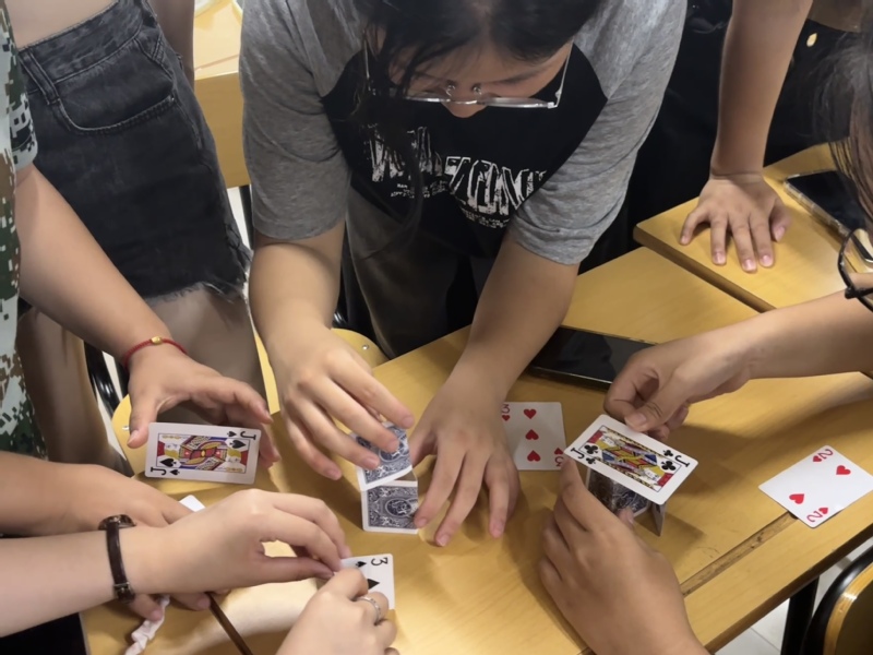 活动伊始,“生日接龙”以无声的方式拉近了彼此的距离;随后的“五毛一块”游戏迅速点燃现场气氛,同学们在轻松互动中建立起初步的团队意识。在“解开千千结”“同舟共济”等合作环节中,大家积极沟通、互相配合,深刻体会到信任与协作的力量。最后的“资源之树”将活动推向高潮,每位同学写下自己的优势并贴于班级树中,共同汇聚成一道多元而温暖的成长风景。