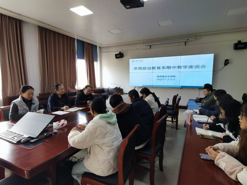 为深入贯彻落实立德树人根本任务,全面提升思政课教学质量与育人实效,及时总结期中阶段思政教学工作成效、破解教学难题,11月19日,马克思主义学院召开期中教学检查学生座谈会和教师座谈会,期中教学检查师生座谈会。会议由学院副院长郑海友主持,各二级学院学生代表参加了学生座谈会,学院全体教师参加了教师座谈会。
