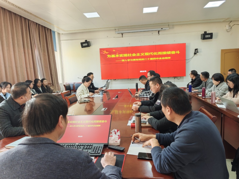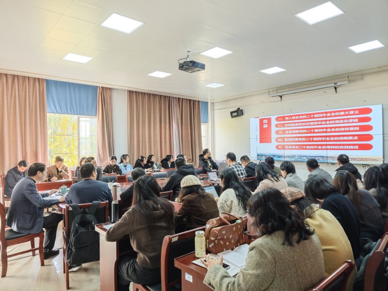 11月26日下午,马克思主义学院召开2025年第十三次党总支理论学习中心组(扩大)学习会,深入学习贯彻党的二十届四中全会精神,科学谋划学院高质量发展路径。学院党总支书记陈复新主持会议,全体思政教师参加学习会。