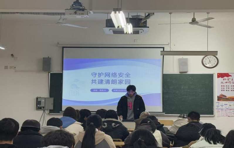 为深入贯彻网络素养教育与法治教育相结合的工作要求,切实增强学生网络安全意识、提升网络风险防范能力,引导广大学子规范网络行为、坚守诚信底线,2025年11月,马克思主义学院各班级陆续召开“守护网络安全,共建清朗家园”主题班会,全院学生积极响应、全员参与。