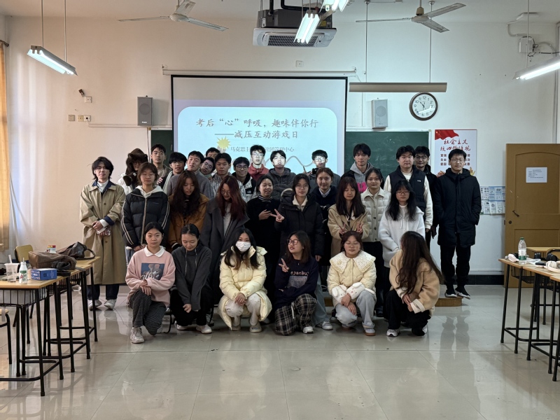 为帮助学生缓解考后压力、舒缓心情,2025年12月14日早上,马克思主义学院于7B208教室开展“考后心呼吸,趣味伴你行”主题减压互动游戏日活动。本次活动通过趣味互动帮助学生释放备考焦虑,增强团队凝聚力,吸引了马克思主义学院五个学生小组共30人参与。