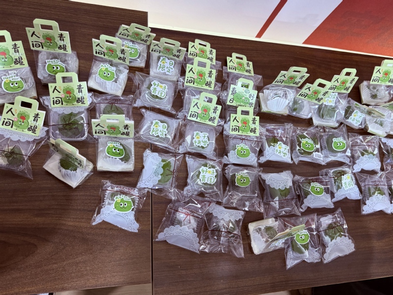 青团制作完成后,各小组精心摆盘、拍照打卡,记录劳动成果。大家围坐一堂,品尝亲手制作的青团,分享关于清明习俗、先辈故事的感悟。学生代表将包装好的青团赠送给学院教师及后勤工作人员,以传统美食传递节日问候与感恩之心。